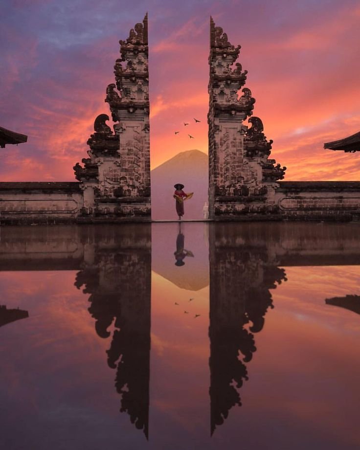 Many visitors hire drivers for early morning departures (4-5 AM) to reach the temple at sunrise when lighting is optimal and before crowds arrive. The journey from Ubud or Seminyak takes approximately 2-2.5 hours. Entrance requires donations (typically IDR 10,000-50,000/INR 50-270) plus sarong rental if needed. Prepare for long queues for the signature photo—arriving at sunrise provides the best chance for manageable wait times.